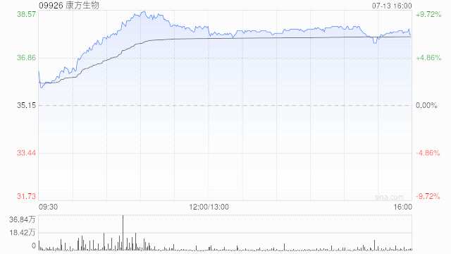 康方生物(09926)午后上漲7.82%,現(xiàn)報37.90港元,成交額2.32億港元。