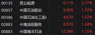 “三桶油”走強,中國石油股份漲1.72%,中國石油化工漲1.52%,中國海洋石油漲1.15%。6月底以來,國際油價呈震蕩拉升態(tài)勢,挺價因素頗多。一方面,全球主要石油出口國宣布進一步減產(chǎn)。另一方面,發(fā)展中國家需求強勁。受益于美元下跌、EIA下調(diào)今年美國原油產(chǎn)量預(yù)測、對發(fā)展中國家需求增長預(yù)期樂觀、全球大型石油出口國削減供應(yīng)等因素,油價有望繼續(xù)震蕩上行。