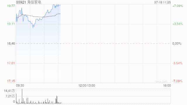 海信家電現(xiàn)漲超4% 股價今年以來累計大漲123%
