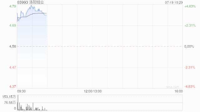 洛陽鉬業(yè)(03993)上漲3.28%,現(xiàn)報4.73港元,成交額3013.360萬港元。