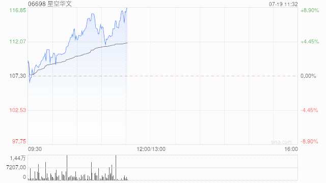 星空華文(06698)早盤上漲5.50%,現(xiàn)報(bào)113.20港元,成交額2363.832萬港元。