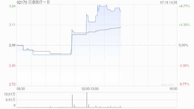貝康醫(yī)療-B午后拉升上揚 股價現(xiàn)漲超7%