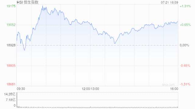 摘要: 7月21日消息,港股午后探底回升,三大指數(shù)紅盤收漲。截至收盤,恒生指數(shù)漲0.78%,報(bào)19075.26點(diǎn),恒生科技指數(shù)漲1%,國(guó)企指數(shù)漲0.8%。盤面上,權(quán)重科技股普漲,快手漲超4%,
