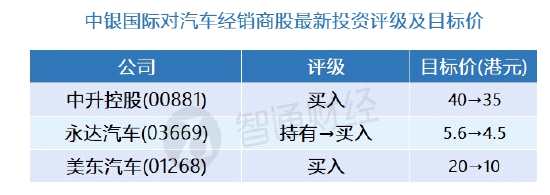 中銀國際發(fā)布研究報(bào)告稱,3間汽車經(jīng)銷商估值分歧不能從盈利表現(xiàn)解釋,在汽車經(jīng)銷商股中首選中升控股(00881),長遠(yuǎn)也偏好中升,認(rèn)為它有清晰轉(zhuǎn)型路線圖及快于同業(yè)的執(zhí)行能力。