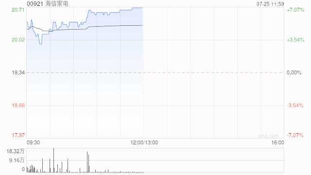 家電股早盤普漲 海信家電漲近7%海爾智家漲超4%