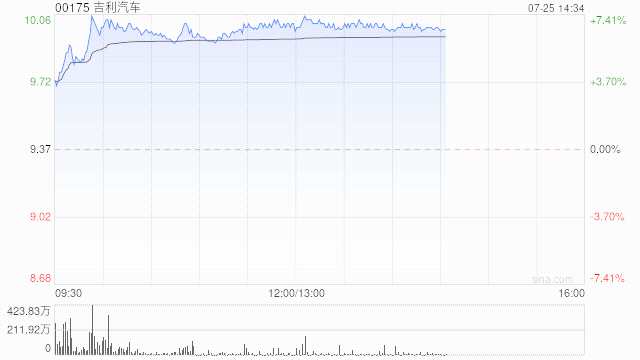 吉利汽車(00175)午盤持續(xù)上漲6.72%,現(xiàn)報10港元,成交額8.183億港元。