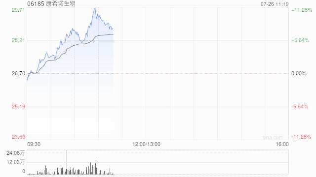 康希諾生物早盤漲幅持續(xù)擴大 現(xiàn)漲近9%