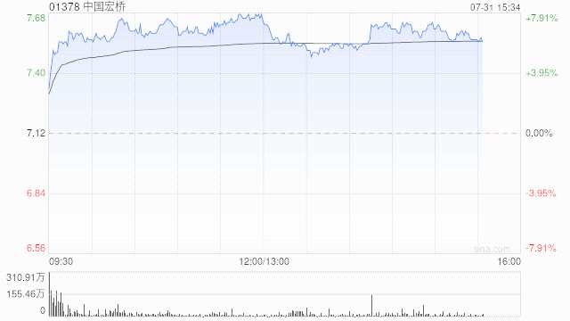 中國宏橋午盤漲超6% 公司股價6月以來累計大漲33%