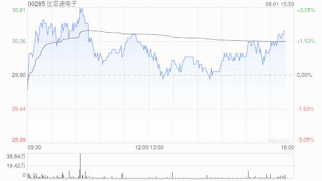 大摩:維持比亞迪電子增持評級 目標(biāo)價(jià)升至38港元