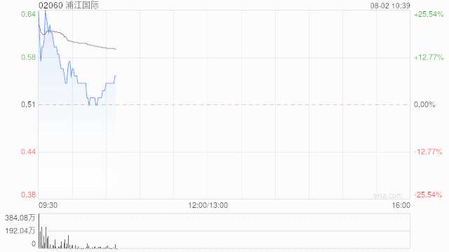 浦江國(guó)際(02060)早盤(pán)一度大漲超25%,現(xiàn)回落上漲5.88%,現(xiàn)報(bào)0.54港元,成交額1527.078萬(wàn)港元。