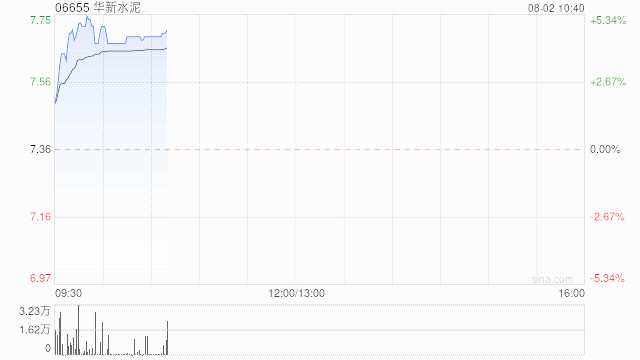 水泥股午盤集體走高 華新水泥漲近6%華潤(rùn)水泥控股漲超3%