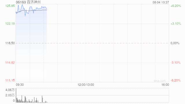 百濟(jì)神州(06160)現(xiàn)漲5.32%,報(bào)124.80港元,成交額3696.485萬(wàn)港元。