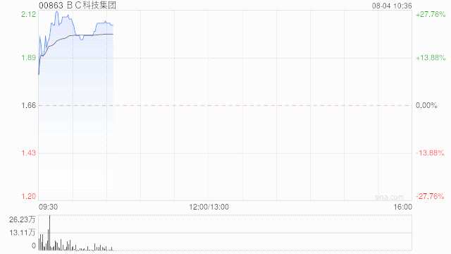 BC科技集團早盤持續(xù)升高 股價現(xiàn)漲超24%