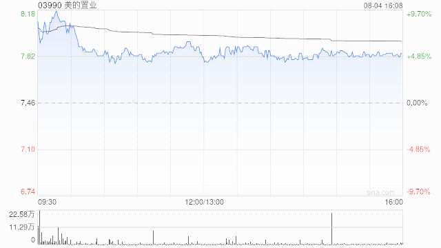 美的置業(yè)(03990)午盤上漲5.09%,現(xiàn)報7.84港元,成交額2041.115萬港元。