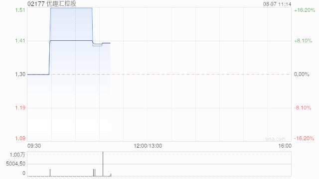 優(yōu)趣匯控股(02177)早盤上漲7.69%,現(xiàn)報1.4港元,成交額2.684萬港元,港股市值2.32億港元。