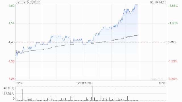 玖龍紙業(yè)午后拉升上揚(yáng) 股價(jià)現(xiàn)漲超4%