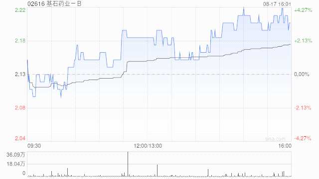 基石藥業(yè)-B(02616)尾盤上漲4.23%,現(xiàn)報(bào)2.22港元,成交額589.713萬港元。