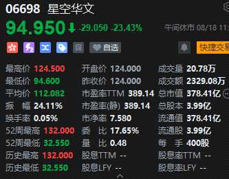 《中國(guó)好聲音》母公司星空華文大跌超23%。消息面上,8月17日晚,李玟一段時(shí)長(zhǎng)達(dá)9分鐘、被分為三段的的錄音被網(wǎng)友公開,引發(fā)極大關(guān)注。網(wǎng)傳錄音中指出,李玟多次向節(jié)目組反映賽制問(wèn)題?!吨袊?guó)好聲音》回應(yīng)李玟錄音事件稱:系惡意剪輯。據(jù)悉,《中國(guó)好聲音》是星空華文旗下最大的綜藝IP。此外,星空華文近日發(fā)布盈警公告,預(yù)計(jì)6月止六個(gè)月凈虧損約1460萬(wàn)至1830萬(wàn)元人民幣,去年同期錄得虧損630萬(wàn)元人民幣;收入預(yù)計(jì)由去年同期的1.83億元人民幣,減少至最多1.52億元人民幣。