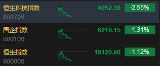 午評(píng):恒指跌1.12%科指跌2.55% 恒大系集體下挫