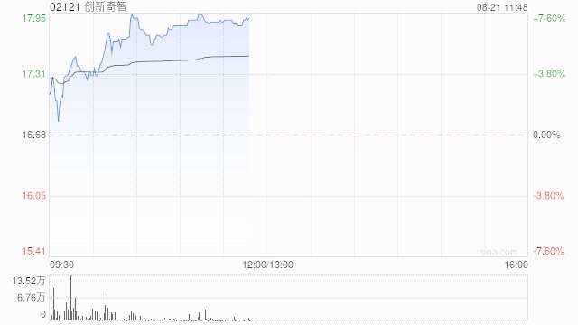 創(chuàng)新奇智(02121)早盤持續(xù)升高,上漲7.07%,現(xiàn)報(bào)17.86港元,成交額2332.440萬(wàn)港元。