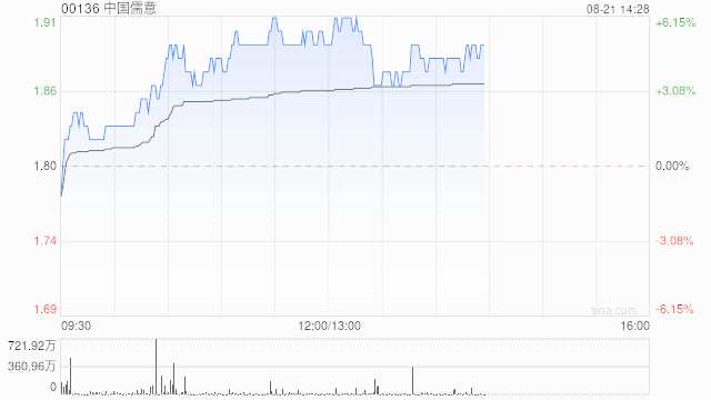 中國儒意(00136)午盤上漲4.44%,現(xiàn)報1.88港元,成交額1.189億港元。