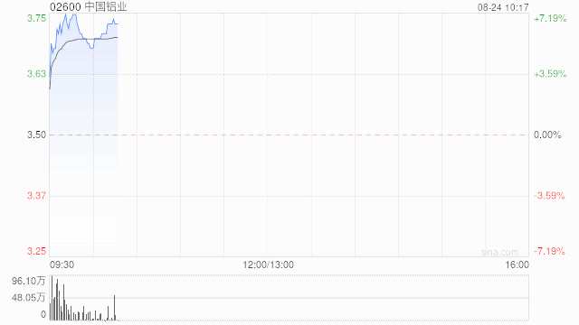 中國鋁業(yè)早盤持續(xù)上揚(yáng) 股價現(xiàn)漲超7%