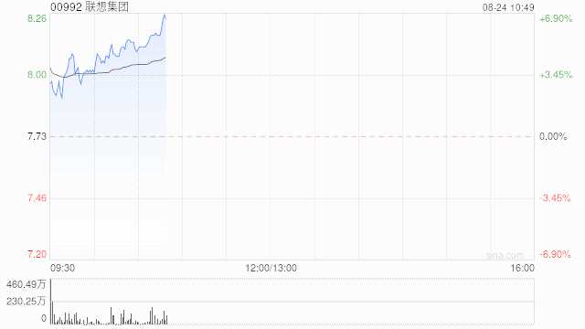 聯(lián)想集團(tuán)(00772)早盤(pán)高開(kāi),上漲5.69%,現(xiàn)報(bào)8.17港元,成交額3.30億港元。