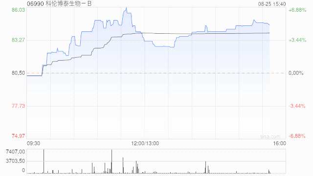科倫博泰生物-B(06990)現(xiàn)漲5.22%,報(bào)84.70港元,成交額741.306萬(wàn)港元。