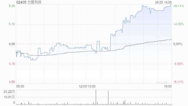 力盟科技(02405)午盤漲幅持續(xù)升高,上漲8.07%,現(xiàn)報(bào)5.36港元,成交額859.024萬港元。