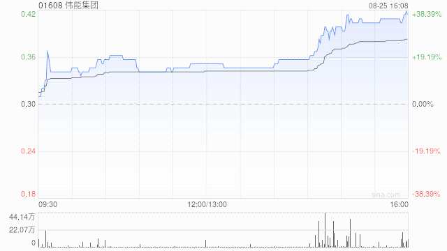 偉能集團午后漲幅持續(xù)擴大 股價現(xiàn)飆升35%
