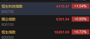 8月29日消息,美股周一走勢(shì)向好,內(nèi)地推出刺激措施,投資者憧憬有利環(huán)球市場(chǎng)表現(xiàn),三大指數(shù)均錄得升幅收市。美元表現(xiàn)回落,美國十年期債息回落至4.20厘水平,金價(jià)表現(xiàn)向好,油價(jià)走勢(shì)略為反彈。今日港股三大指數(shù)高開,恒生指數(shù)漲0.72%,報(bào)18261.69點(diǎn),恒生科指漲1.04%,國企指數(shù)漲0.89%。盤面上,科網(wǎng)股齊漲,網(wǎng)易漲超2%,美團(tuán)、阿里、百度漲超1%;汽車股延續(xù)昨日漲勢(shì),零跑汽車漲超5%領(lǐng)銜;內(nèi)房股普漲,建發(fā)國際漲近3%;恒大復(fù)盤第二日再跌14%;體育用品、互聯(lián)網(wǎng)醫(yī)療、醫(yī)藥等板塊上漲。