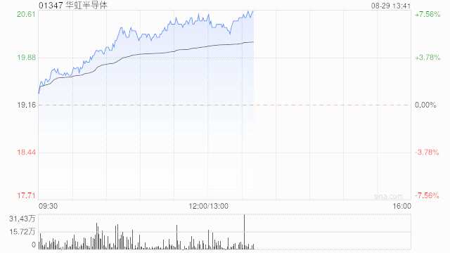 華虹半導體(01347)午后持續(xù)拉升,上漲7.52%,現(xiàn)報20.60港元,成交額2.078億港元。
