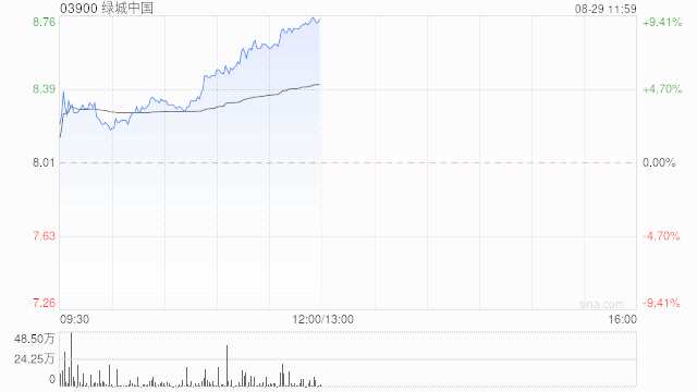 內(nèi)房股及物管股漲幅擴(kuò)大 綠城中國漲逾10%雅生活服務(wù)漲超6%