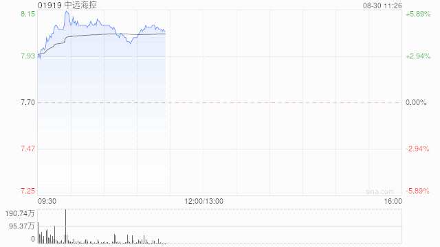 中遠(yuǎn)??兀?1919)早盤上漲4.81%,現(xiàn)報(bào)8.07港元,成交額1.647億港元。