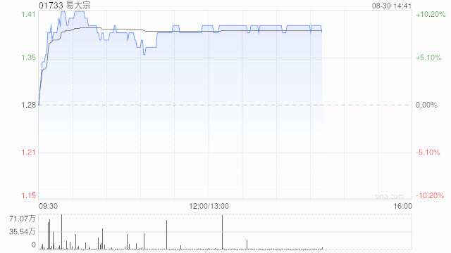 易大宗(01733)昨日收盤(pán)漲超9%,今日早盤(pán)高開(kāi),午后再漲8.59%,現(xiàn)報(bào)1.39港元,成交額1128.773萬(wàn)港元。