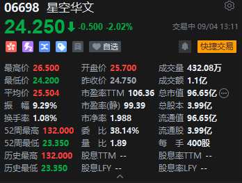 9月4日消息,《中國(guó)好聲音》母公司星空華文股價(jià)再跌2%,總市值僅96.65億港元。