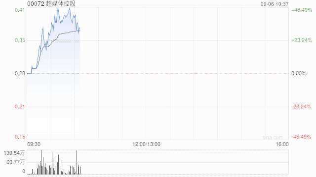 超媒體控股早盤漲幅持續(xù)擴(kuò)大 股價(jià)現(xiàn)漲超39%