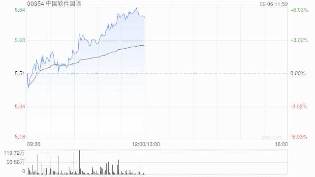 中國軟件國際(00354)早盤股價(jià)持續(xù)上揚(yáng),上漲5.26%,現(xiàn)報(bào)5.80港元,成交額1.269億港元。