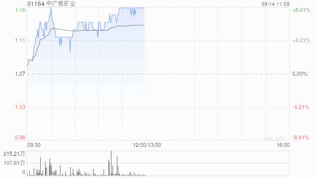 中廣核礦業(yè)早盤持續(xù)升高現(xiàn)漲超7% 本月以來累漲26%