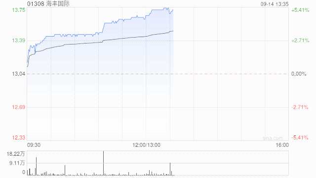 海運(yùn)股午盤普漲,海豐國際(01308)上漲5.22%,報(bào)13.72港元;東方海外國際(00316)上漲4.13%,報(bào)102.20港元;中國外運(yùn)(00598)上漲1.03%,報(bào)2.93港元;中遠(yuǎn)???601919)(01919)上漲0.99%,報(bào)8.18港元。