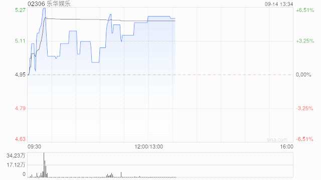 樂(lè)華娛樂(lè)(02306)午盤上漲5.66%,現(xiàn)報(bào)5.23港元,成交額926.104萬(wàn)港元。