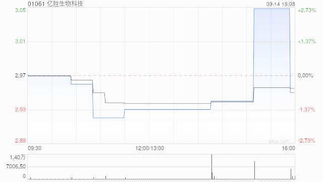 億勝生物科技(01061)發(fā)布公告,于2023年9月14日斥資2.655萬港元回購股份9000股,每股回購價格為2.95港元。
