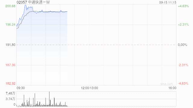 中通快遞-W(01057)繼昨日上漲3%后,今日再漲3.86%,現(xiàn)報(bào)199.20港元,成交額1.350億港元。