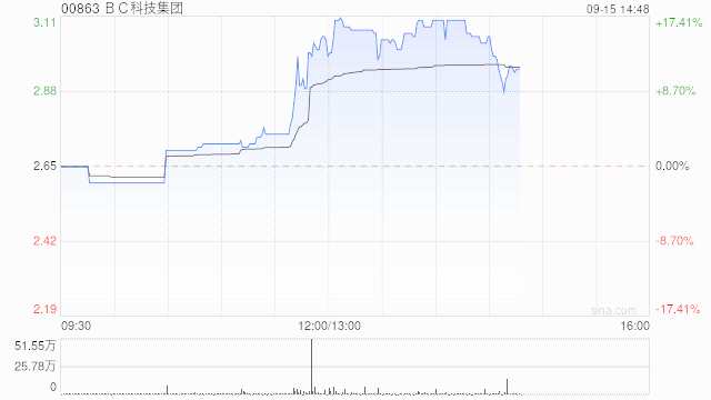 BC科技集團(tuán)(00863)早盤(pán)漲超14%,股價(jià)現(xiàn)稍回落至漲11.70%,現(xiàn)報(bào)2.96港元,成交額666.347萬(wàn)港元。