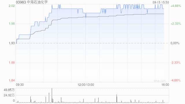中海石油化學(03983)午盤上漲4.66%,現(xiàn)報2.02港元,成交額1027.153萬港元。