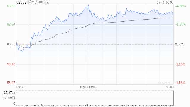 舜宇光學(xué)科技(02382)尾盤(pán)上漲3.53%,現(xiàn)報(bào)63港元,成交額3.691億港元。