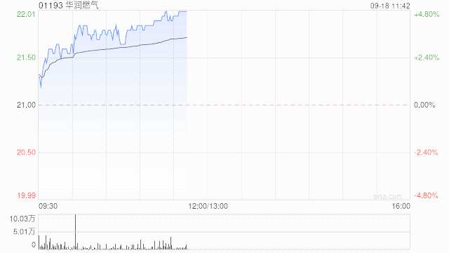 燃?xì)夤稍绫P部分走高 華潤燃?xì)猬F(xiàn)漲超4%