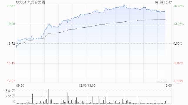 九龍倉集團(00004)近期持續(xù)上升,月內(nèi)累漲超18%?,F(xiàn)漲5.13%,報19.68港元,成交額8795.686萬港元。