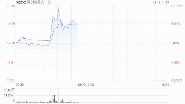微創(chuàng)機(jī)器人(300024)-B(02252)早盤(pán)急漲6.63%,現(xiàn)報(bào)18.66港元,成交額3610.098萬(wàn)港元。