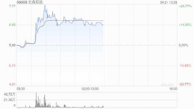 北森控股(09669)早盤一度漲超29%,高見7.80港元,午后上漲15.03%,現(xiàn)報6.89港元,成交額3974.158萬萬港元。